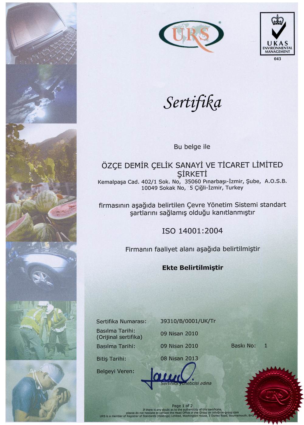 ÖZÇE; demir çelik ürünlerinin temini, satışı ve işlenmesi süreçlerindeki tüm faaliyetleri çevreye duyarlı bir şekilde gerçekleştirmeyi temel ilke olarak almıştır. Bu ilke çerçevesinde;