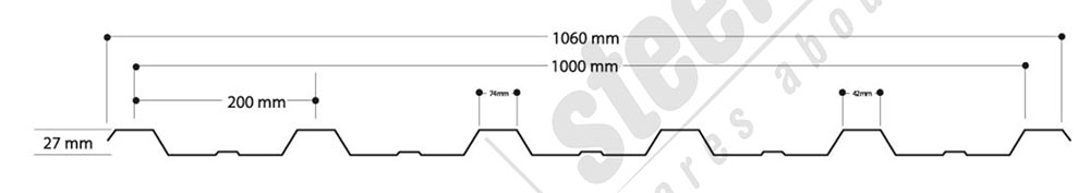 Trapez 27/200 formu Kalınlık/Thickness : 0,25-1,20 mm Genişlik/Width : 865 mm ve 1.062 mm